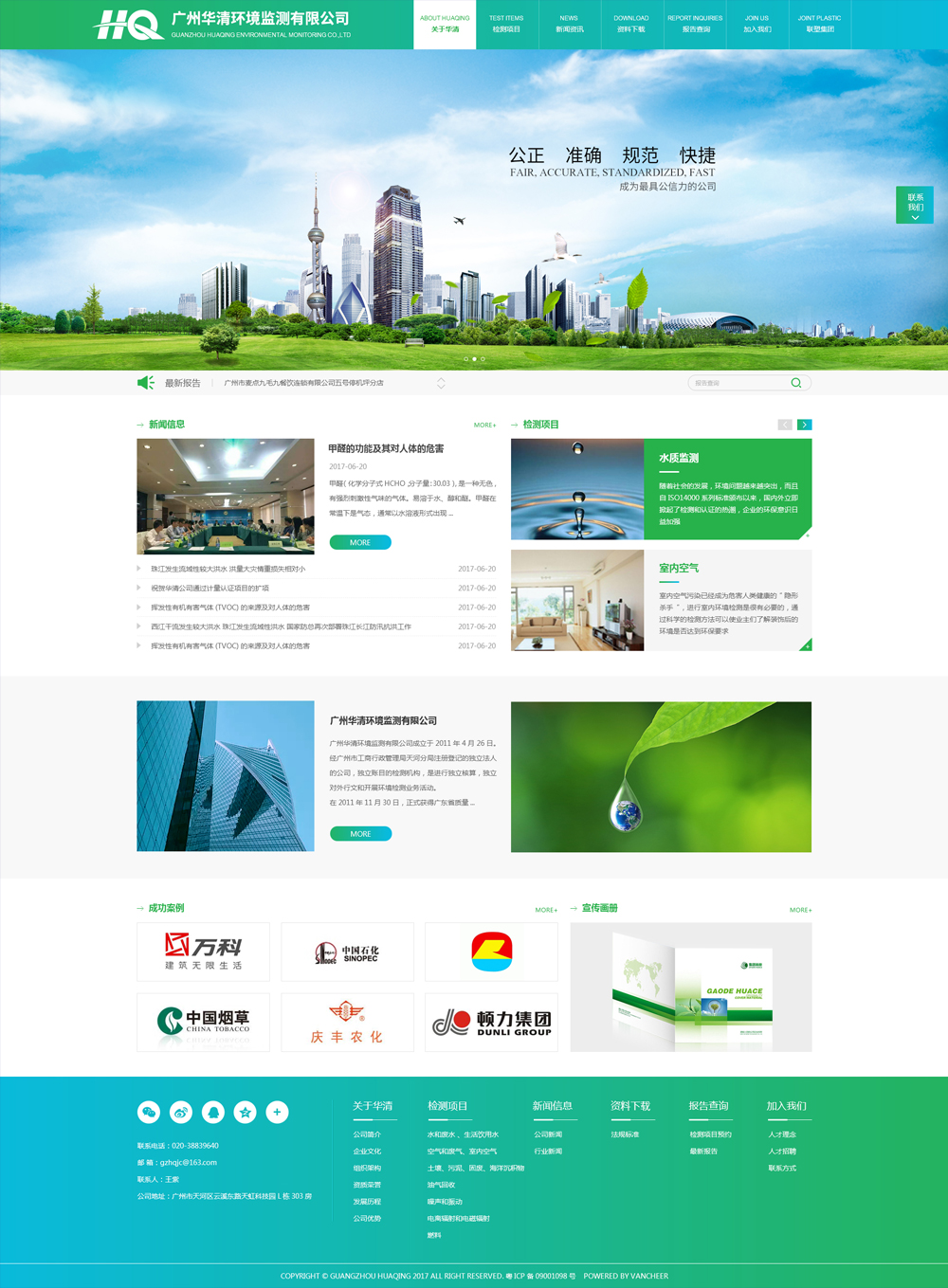 广州华清环境监测有限公司成立于2011年4月,是一具有独立法人资格的三方环境检测机构,能独立对外行文和开展业务活动,出具的检测报告被各级政府部门及认证机构所认可,能够承担相应的法律责任。2016年,公司并入中国联塑集团(香港上市公司代号:2128),成为中国联塑集团旗下的控股子公司。借助于集团总部的强大实力,公司不断发展和提升,目前拥有近3000平方的办公实验区,一批先进的采样、检测仪器,技术人员配备齐全。依靠专业化的技术团队、先进的采样检测设备、丰富的检测经验、以及优质的服务和“一站式”检测技术等优势,公司必将在环保行业树立更加良好的信誉和口碑。