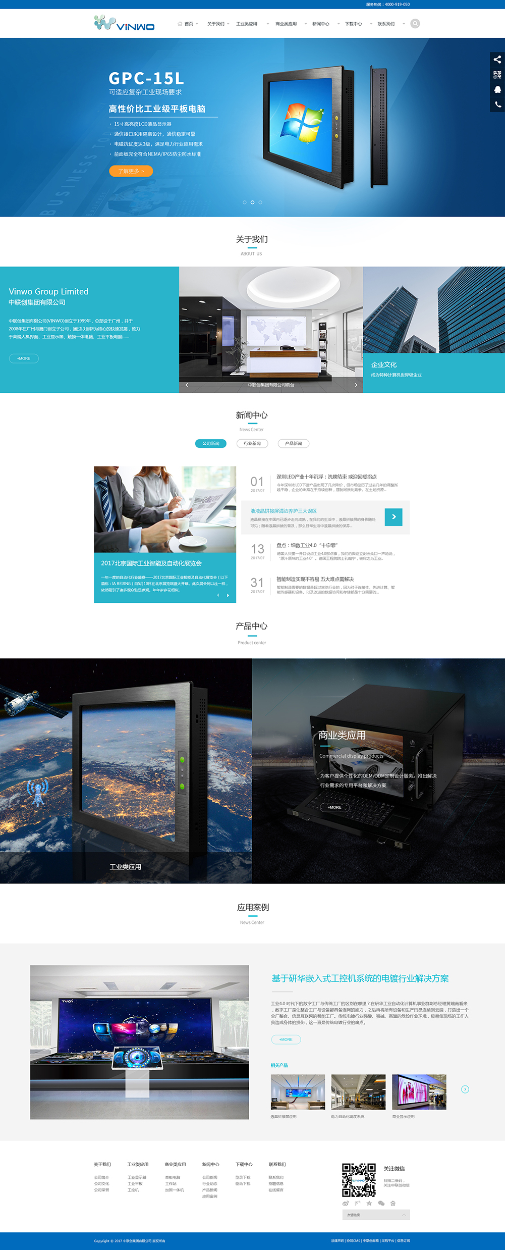 中联创集团有限公司(Vinwo)创立于1999年,总部设于广州,并于2008年在广州与厦门创立子公司,通过以创新为核心的快速发展,致力于高端人机界面、工业显示器、触摸一体电脑、工业平板电脑、广告机、液晶拼接屏、LED屏以及工业加固计算机的生产、研发、销售,为客户提供个性化的OEM/ODM定制设计服务,推出解决行业需求的专用平台和解决方案,能快速使客户的想法成为可行性的方案,协助客户将自己的产品快速推向市场。