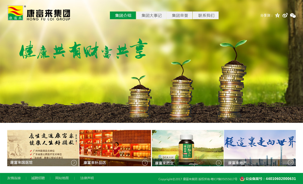 香港康富来集团成立1972年,于1985年进入内地发,是一以健康产业、房地产为主导的现代化大型集团,拥有7全资子公司,是国内知名企业。 康富来集团四十年来一直为健康医疗产业在努力,于1995年成立康富来药业,康富来保健品在国内商超、药店终端的销售一直名列前茅,旗下的洋参含片、脑轻松胶囊、血尔口服液、虫草王胶囊等系列保健品深受全国消费者喜爱。 2004年,康富来集团涉足地产行业,以商业地产和工业地产为核心业务。成立了广州市康富来地产开发有限公司、顺德天富来国际工业城有限公司。经过多年发展,康富来集团在地产领域已取得巨大成就:在商业地产方面,康富来集团收购了越秀区沿江中路甲级写字楼更名为康富来国际大厦,在天河北商业圈自建甲级写字楼康富来国际补品中心大厦;在工业地产方面,康富来集团承接了顺德政府三旧改造项目——顺德原容里工业区(占地160万平方米,可建标准厂房150万平方米,商业住宅300万平方米)。已在顺德建成全国品质的工业地产项目——天富来国际工业城。目前,康富来地产业务逐渐向商业住宅领域延伸,规划未来10年在顺德打造一个绿色、低碳、环保、宜居园,开启住宅领域新时代。
