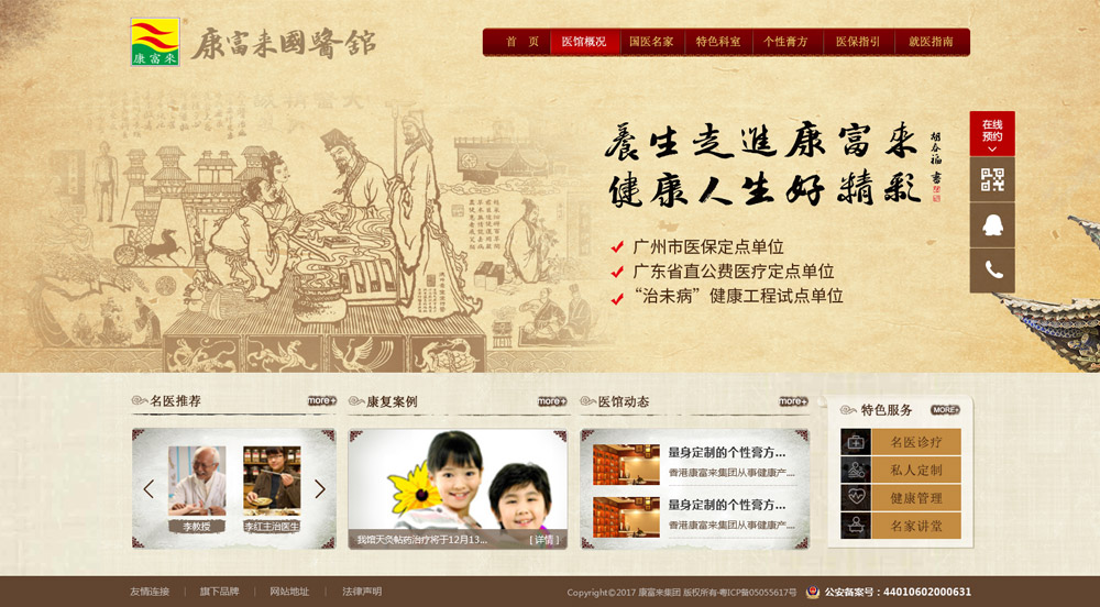 香港康富来集团从事健康产业五十年,是国内知名企业。康富来国医馆是康富来集团投资兴办的一南中国具特色的中医医疗机构,为广东省卫生厅授牌的“治未病健康工程试点单位”、广州市医保定点单位、广东省直公费医疗定点单位、广东省中医药学会名医会诊中心、广东省亚健康科普教育基地。