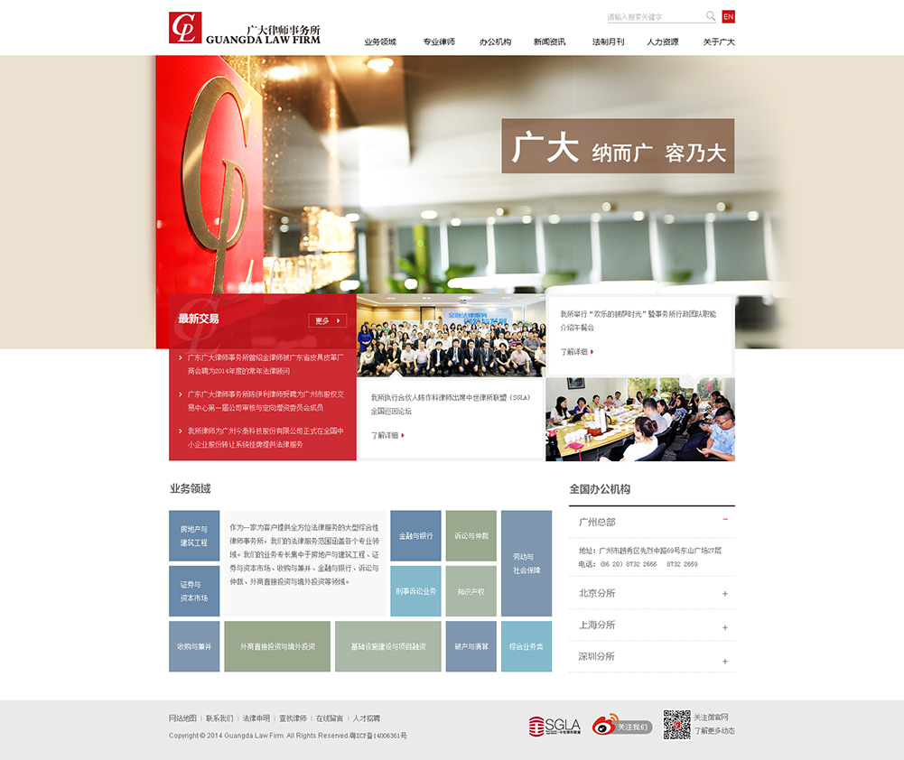 广大总部设于广州,并在北京、上海和深圳设有分支机构,地理分布优势使我们的服务范围覆盖中国重要经济发展区域的各大主要城市。同时,作为中国一个跨国律师事务所联盟----中世律所联盟(SGLA)的创始成员所之一,我们可以通过SGLA的国内和国际网络获得更为广阔的空间和资源,从而为中国和范围内的客户提供更加优质的法律服务。