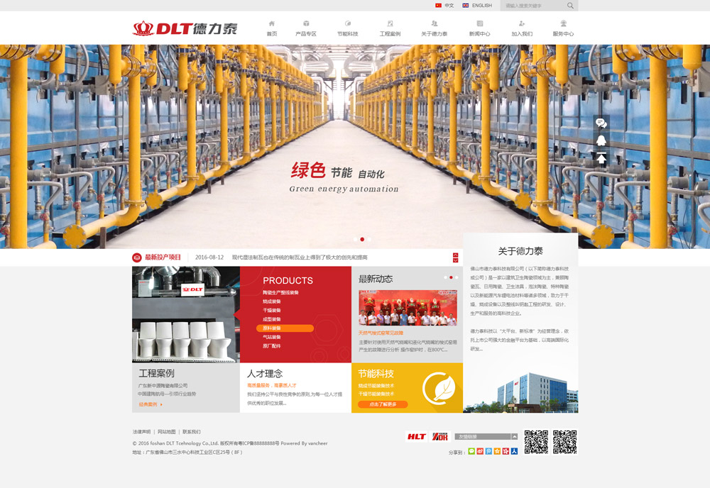 佛山市德力泰科技有限公司(以下简称德力泰科技或公司)是一以建筑卫生陶瓷领域为主,兼顾陶瓷瓦、日用陶瓷、卫生洁具,泡沫陶瓷、特种陶瓷以及新能源汽车锂电池材料等诸多领域,致力于干燥、烧成设备以及整线交钥匙工程的研发、设计、生产和服务的高科技企业。 德力泰科技以“大平台、新标准”为经营理念,依托上市公司强大的金融平台为基础,以高端国际化研发团队和研发中心为创新驱动力,始终坚持高度国际化运作;通过整合全球资源,扎根中国本土,立足亚洲市场,以占领全球市场制高点为己任,通过持续创新,不断引领行业在绿色节能、自动化、信息化和智能化方面创立新标准,达到水平。 德力泰科技拥有一支来自行业内的精英团队,其中80%以上的成员在该行业工作超过15年,并且在国内、外不同的陶瓷机械设备企业从事过高级管理、工程设计、生产制造、工艺服务以及市场营销等实践经验丰富的高端人才,专业的技术和丰富的经验是我们为客户创造利益的基础。
